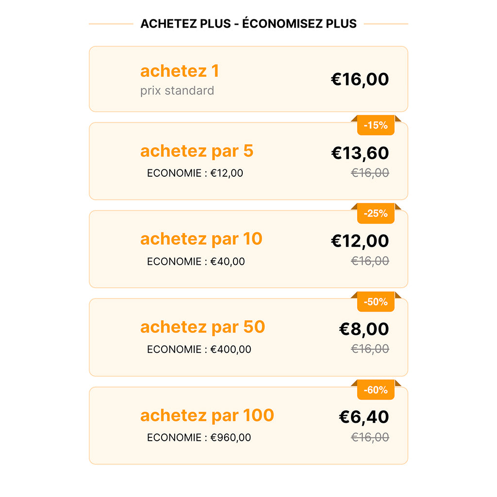 - Livraison entre 3 à 5 jours ouvrés, selon le transporteur (à choisir au moment du paiement).